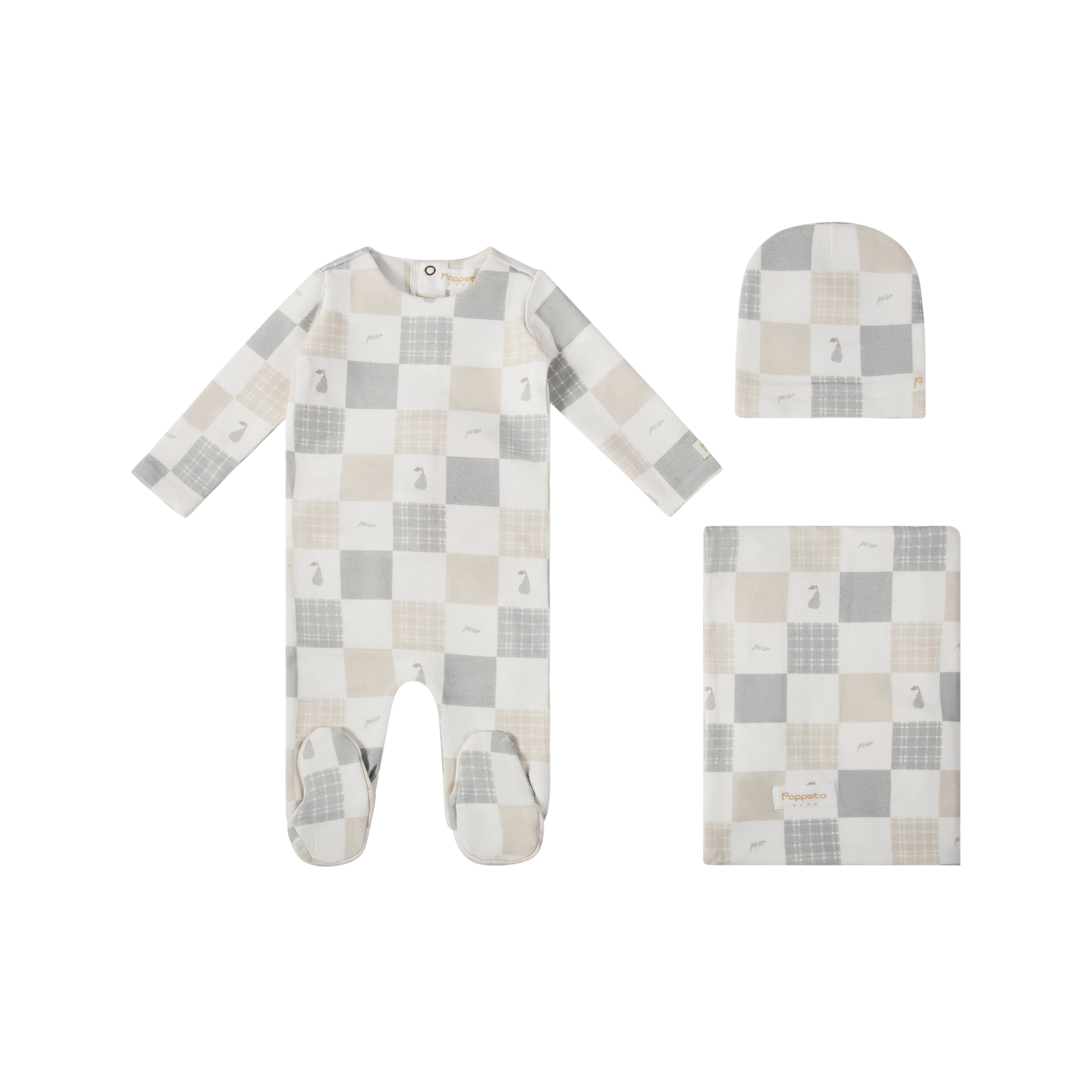 Pear Checker Layette Set - Blue