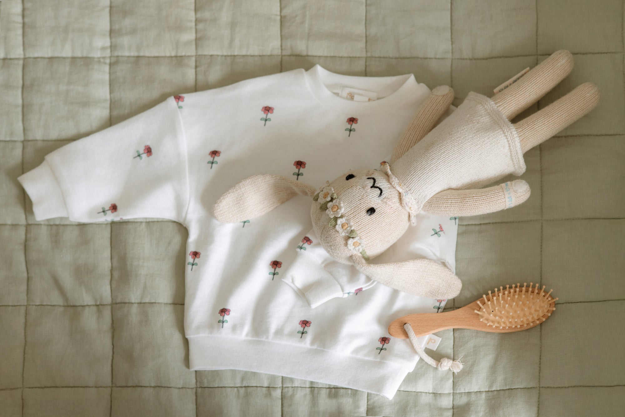 Daisy Print Sweat Top - Baby Pink